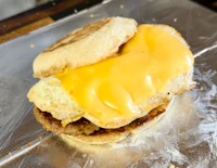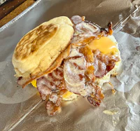 Included in the breakfast sandwich: English muffin, egg, cheese & your choice of meat. $1 more to add extra meat.